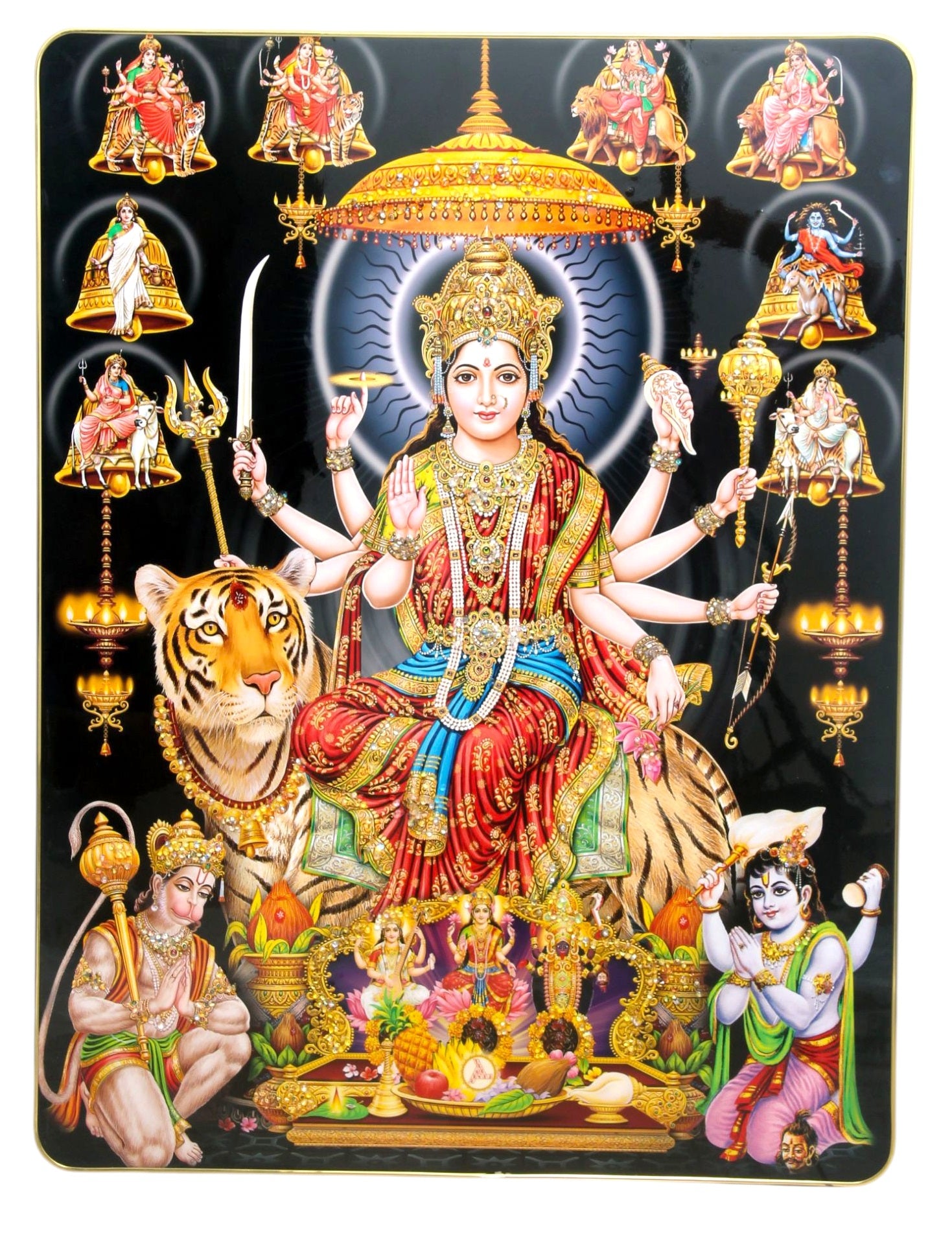 Panchmukhi MAA DURGA JI , ( Stone Work Photo Frame ). Art of Luxury SIZE - 66.04 x 50.8 CM (Copy)