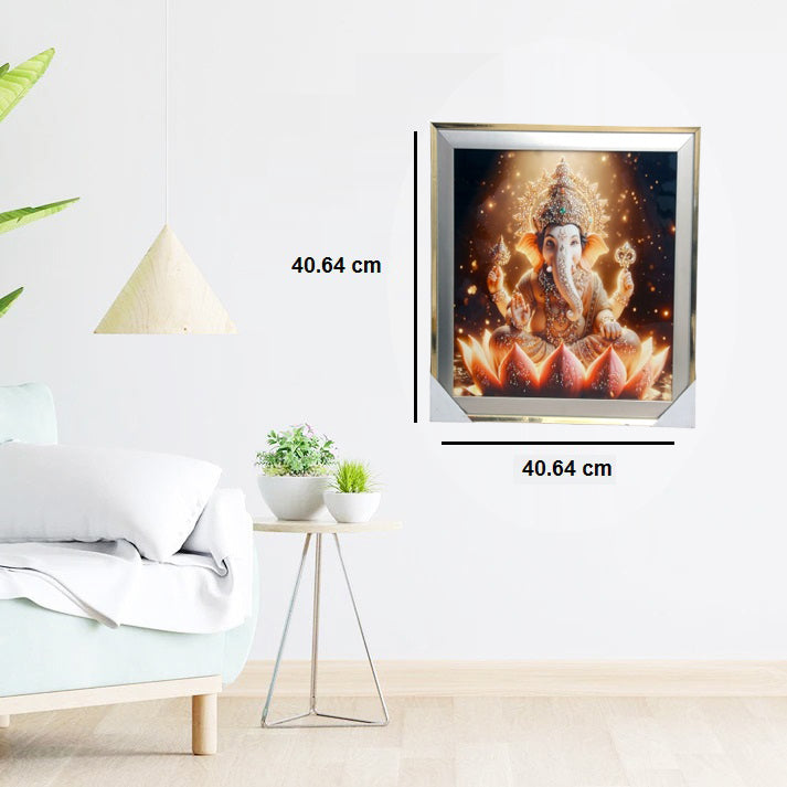 Shree Ganesh ji Photo with Frame , The Art of Bahulprema , ( Stone Work Photo Frame ). Art of Luxury SIZE - 40.64x40.64 CM